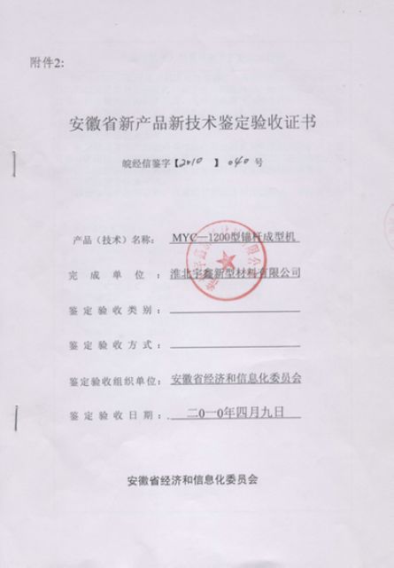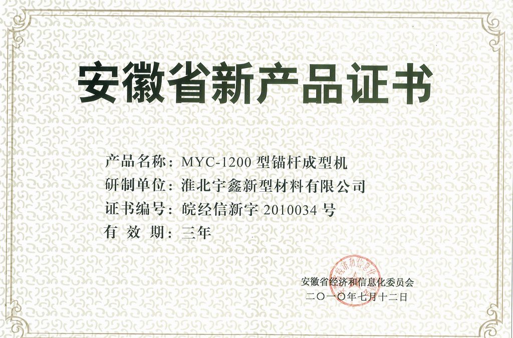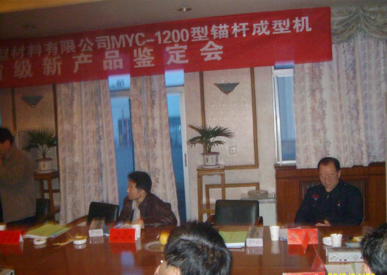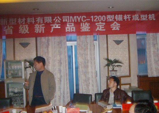 2010年4月9日,淮北宇鑫新型材料有限公司獨(dú)立開發(fā)、研制具有自主知識產(chǎn)權(quán)的“MYC-1200型錨桿成型機(jī)”新產(chǎn)品鑒定會在安徽省淮北市舉行。省內(nèi)工程機(jī)械行業(yè)的專家教授,安徽省經(jīng)濟(jì)和信息化委員會、淮北市、濉溪縣經(jīng)濟(jì)和信息化委員會、淮北市科技局及金錨公司領(lǐng)導(dǎo)、科研人員參加了本次鑒定會。