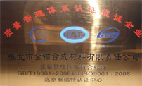 淮北宇鑫新型材料有限公司各部門(mén)在公司董事長(zhǎng)耿玉明的領(lǐng)導(dǎo)下,經(jīng)過(guò)五個(gè)多月的不懈努力,順利通過(guò)了ISO9001質(zhì)量管理體系認(rèn)證評(píng)審,獲得了《 ISO9001:2008國(guó)際質(zhì)量體系認(rèn)證證書(shū)》。這標(biāo)志著淮北宇鑫新型材料有限公司在質(zhì)量管理、人力資源、基礎(chǔ)設(shè)施 、工作環(huán)境、技術(shù)操作、現(xiàn)場(chǎng)管理等一系列企業(yè)管理體系的成長(zhǎng)和成熟。